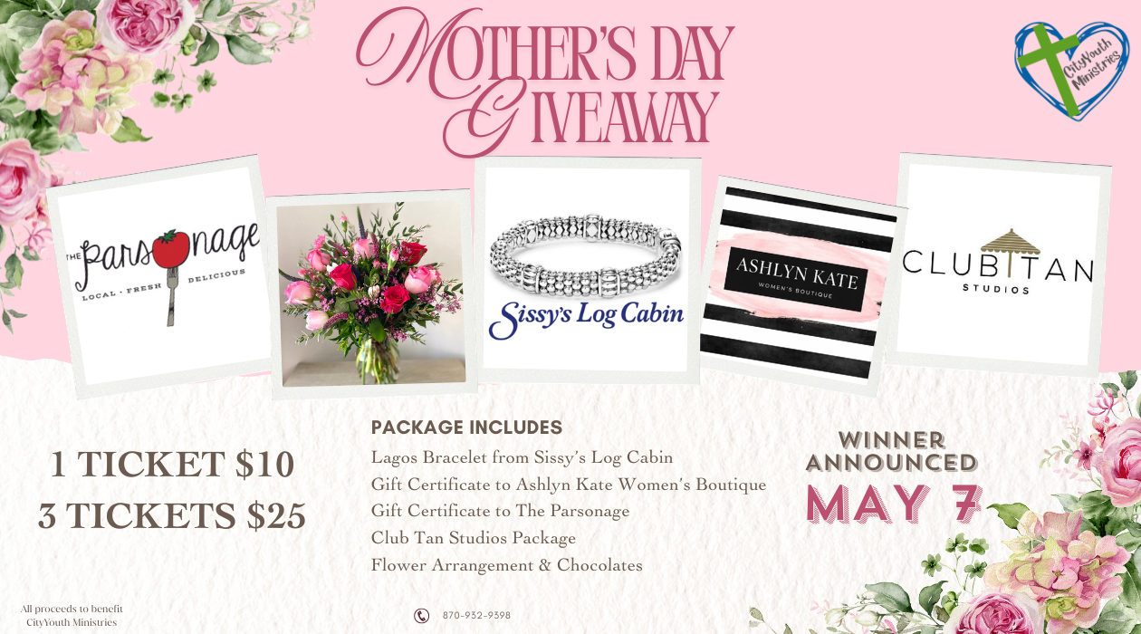Mother's Day Giveaway X/TwitterThis field is for validation purposes and should be left unchanged.Mother's Day Giveaway Tickets1 Ticket for $10 or 3 for $251 Ticket3 TicketsName(Required) First Last Email(Required) Phone(Required)Billing Address(Required) Street Address Address Line 2 City State / Province / Region ZIP / Postal Code Country AfghanistanAlbaniaAlgeriaAmerican SamoaAndorraAngolaAnguillaAntarcticaAntigua and BarbudaArgentinaArmeniaArubaAustraliaAustriaAzerbaijanBahamasBahrainBangladeshBarbadosBelarusBelgiumBelizeBeninBermudaBhutanBoliviaBonaire, Sint Eustatius and SabaBosnia and HerzegovinaBotswanaBouvet IslandBrazilBritish Indian Ocean TerritoryBrunei DarussalamBulgariaBurkina FasoBurundiCabo VerdeCambodiaCameroonCanadaCayman IslandsCentral African RepublicChadChileChinaChristmas IslandCocos IslandsColombiaComorosCongoCongo, Democratic Republic of theCook IslandsCosta RicaCroatiaCubaCuraçaoCyprusCzechiaCôte d'IvoireDenmarkDjiboutiDominicaDominican RepublicEcuadorEgyptEl SalvadorEquatorial GuineaEritreaEstoniaEswatiniEthiopiaFalkland IslandsFaroe IslandsFijiFinlandFranceFrench GuianaFrench PolynesiaFrench Southern TerritoriesGabonGambiaGeorgiaGermanyGhanaGibraltarGreeceGreenlandGrenadaGuadeloupeGuamGuatemalaGuernseyGuineaGuinea-BissauGuyanaHaitiHeard Island and McDonald IslandsHoly SeeHondurasHong KongHungaryIcelandIndiaIndonesiaIranIraqIrelandIsle of ManIsraelItalyJamaicaJapanJerseyJordanKazakhstanKenyaKiribatiKorea, Democratic People's Republic ofKorea, Republic ofKuwaitKyrgyzstanLao People's Democratic RepublicLatviaLebanonLesothoLiberiaLibyaLiechtensteinLithuaniaLuxembourgMacaoMadagascarMalawiMalaysiaMaldivesMaliMaltaMarshall IslandsMartiniqueMauritaniaMauritiusMayotteMexicoMicronesiaMoldovaMonacoMongoliaMontenegroMontserratMoroccoMozambiqueMyanmarNamibiaNauruNepalNetherlandsNew CaledoniaNew ZealandNicaraguaNigerNigeriaNiueNorfolk IslandNorth MacedoniaNorthern Mariana IslandsNorwayOmanPakistanPalauPalestine, State ofPanamaPapua New GuineaParaguayPeruPhilippinesPitcairnPolandPortugalPuerto RicoQatarRomaniaRussian FederationRwandaRéunionSaint BarthélemySaint Helena, Ascension and Tristan da CunhaSaint Kitts and NevisSaint LuciaSaint MartinSaint Pierre and MiquelonSaint Vincent and the GrenadinesSamoaSan MarinoSao Tome and PrincipeSaudi ArabiaSenegalSerbiaSeychellesSierra LeoneSingaporeSint MaartenSlovakiaSloveniaSolomon IslandsSomaliaSouth AfricaSouth Georgia and the South Sandwich IslandsSouth SudanSpainSri LankaSudanSurinameSvalbard and Jan MayenSwedenSwitzerlandSyria Arab RepublicTaiwanTajikistanTanzania, the United Republic ofThailandTimor-LesteTogoTokelauTongaTrinidad and TobagoTunisiaTurkmenistanTurks and Caicos IslandsTuvaluTürkiyeUS Minor Outlying IslandsUgandaUkraineUnited Arab EmiratesUnited KingdomUnited StatesUruguayUzbekistanVanuatuVenezuelaViet NamVirgin Islands, BritishVirgin Islands, U.S.Wallis and FutunaWestern SaharaYemenZambiaZimbabweÅland Islands Credit Card American ExpressDiscoverMasterCardVisaSupported Credit Cards: American Express, Discover, MasterCard, Visa Card Number Expiration Date Month Month010203040506070809101112 Year Year20262027202820292030203120322033203420352036203720382039204020412042204320442045 Security Code Cardholder Name Total